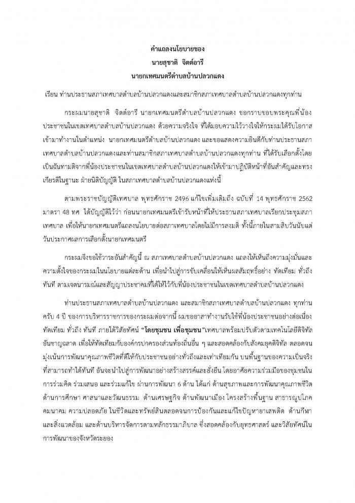 นโยบายของนายกเทศมนตรีตำบลบ้านปลวกแดง